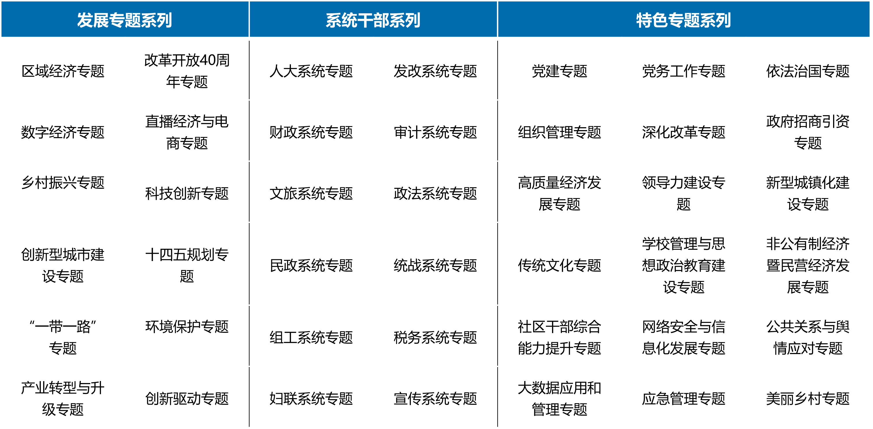 针对各级公务员系统、党政机关、事业单位等机构的干部培养需求量身定制,在课程设置、教学方式、授课形式等方面均可按需求灵活设置,秉承形式多样,实用实效的原则,充分发挥四川大学的学科优势,创新项目研发, 积极开展“线上+线下”、“课堂教学+现场教学+小组研讨+成果汇报”等立体化教学模式,体现“时代性,针对性,有效性”的教育培训特色。