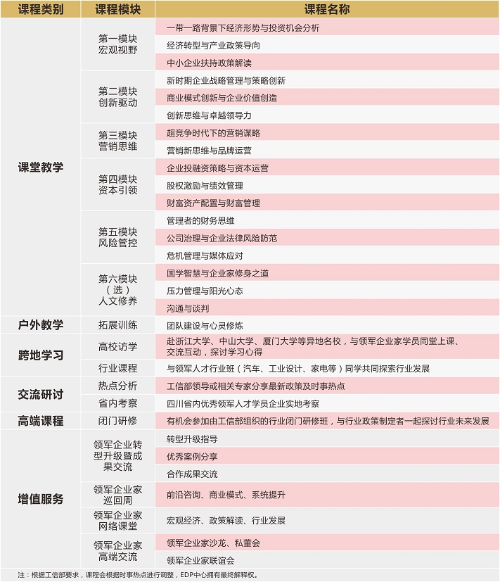 四川作为西部大开发的重点省份,经济影响辐射西南三省一市,是中小企业的密集区域,为推动西南地区中小企业发展,四川大学整合全国优质资源,为广大中小企业家搭建开拓视野、拓展思路、结交盟友的广阔平台,提升企业家的管理水平和综合素质,打造一批优秀的领军企业家,为地方经济发展做出应有的贡献!