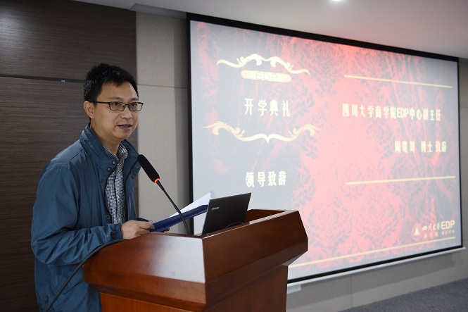 首先,四川大学商学院EDP中心副主任周贵川博士代表四川大学商学院向所有参加此次培训的学员表示欢迎,在介绍四川大学、商学院、EDP中心的办学历程和文化底蕴后,对本次结合建投集团实际所设计的培训课程特点及学习安排作了相应的介绍,同时,对本期学员的培训学习提出了期许!