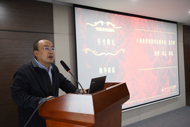 随后,兴锦建投集团党委副书记、总经理刘移同志,代表建投集团作开班讲话,他对四川大学商学院的各位领导和老师为本次培训从课程设置、师资配备、课程服务等各方面所做的精心安排表示衷心感谢!并结合实际工作,要求年轻干部要依照习近平总书记的指示,经受严格的思想淬炼、政治历练、实践锻炼,在复杂严峻的斗争中经风雨、见世面、壮筋骨,真正锻造成为烈火真金。因此更希望大家珍惜本次学习的机会,以一名学员的身份严格要求自己,积极参与,认真学习,并将所学知识在各自岗位上进行落实,为兴锦建投集团的可持续发展做出贡献。