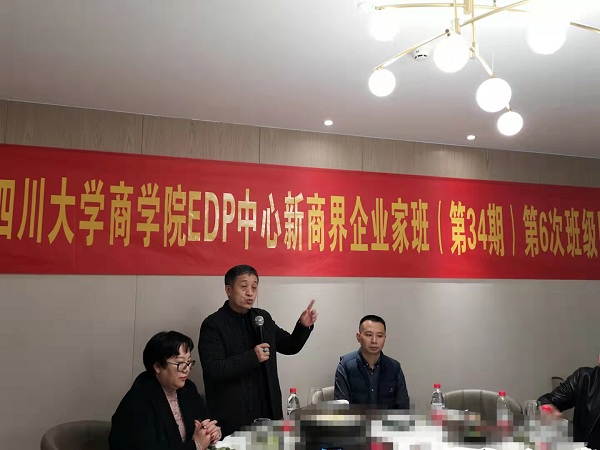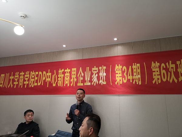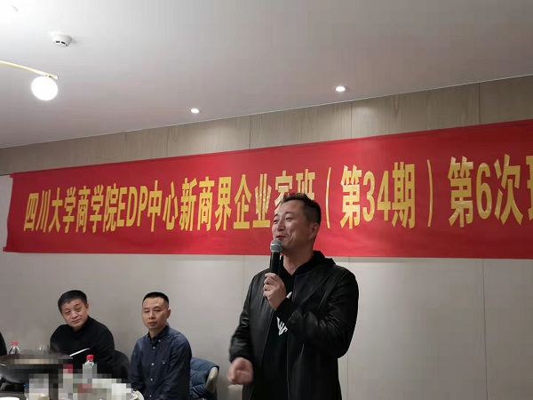 2021年10月23日课后18:30—21:00,在四川省弘马贸易有限公司副总裁、副班长何成平同学的全程友情赞助下,四川大学商学院EDP中心2021春季新商界企业家高级研修班(第34期)第6次班级团队建设活动在成都尽膳珍里顺利举行。