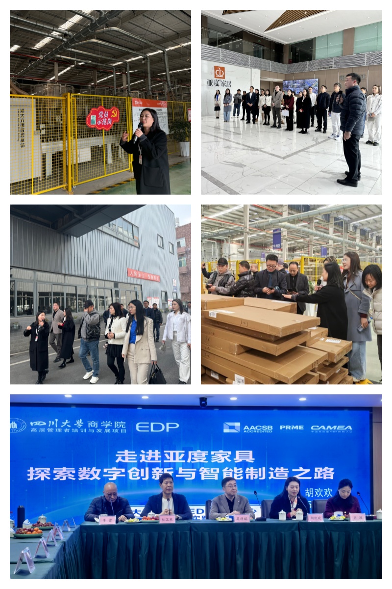 2月28日,四川大学商学院EDP培训中心开启企业家项目首场参访实践活动——在四川大学商学院EDP培训中心常务副主任晁祥瑞、副主任肖颖的带队下,30余位企业家学员深入亚度家具数字化工厂,通过实地考察、高层对话与深度研讨,解码传统制造业数字化转型的实战历程。