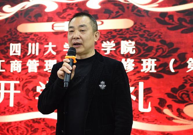 随后,四川大学MBA(研修)校友会会长、杜臣物流有限公司董事长杜华先生为新学员们带来了慷慨激昂的致辞。杜华先生首先向新学员们介绍了四川大学MBA(研修)校友会的基本情况,并代表校友会对第47期的新同学们致以亲切的问候。杜华先生希望新同学们积极参加校友会活动,并推动校友会的发展,以商为本,以趣结缘。最后,希望各位新同学在西南最高学府―四川大学学有所成。