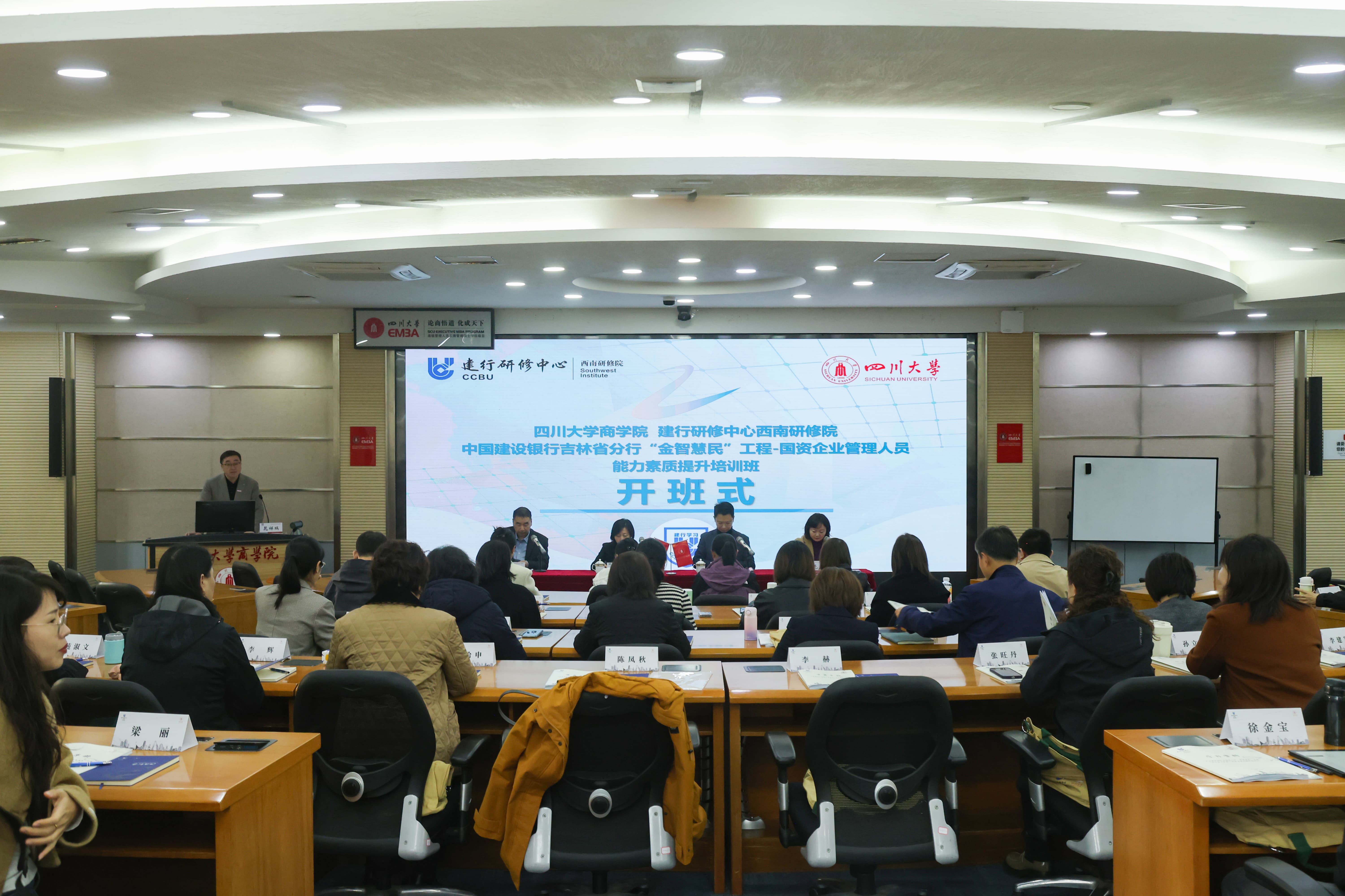2025年11月24日上午,四川大学商学院-中国建设银行吉林省分行“金智慧民”工程-国资企业管理人员能力素质提升培训班在四川大学商学院顺利开班。