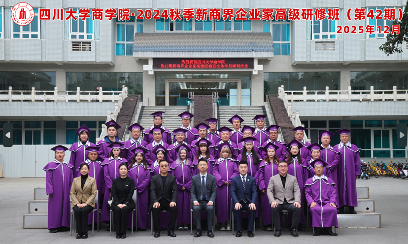 2025年12月6日上午,四川大学商学院2023卓越企业家转型精进班(第1期)、2024秋季新商界企业家高级研修班(第42期)、2024秋季工商管理课程研修班(第54期)结业仪式在四川大学商学院113教室隆重举行。